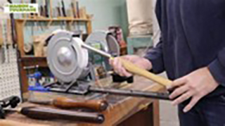 Bédane, gouge à dégrossir, racloir, tronquoir, gouge à profiler, gouge à creuser avec touret Bosch, système d’affûtage Koch et Tormek.