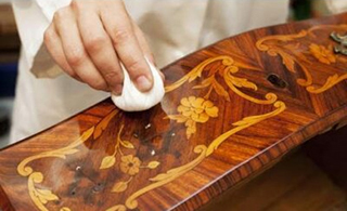 Technique de finition au tampon à main, polissage et vernis sur deux bois d’aspect différent.